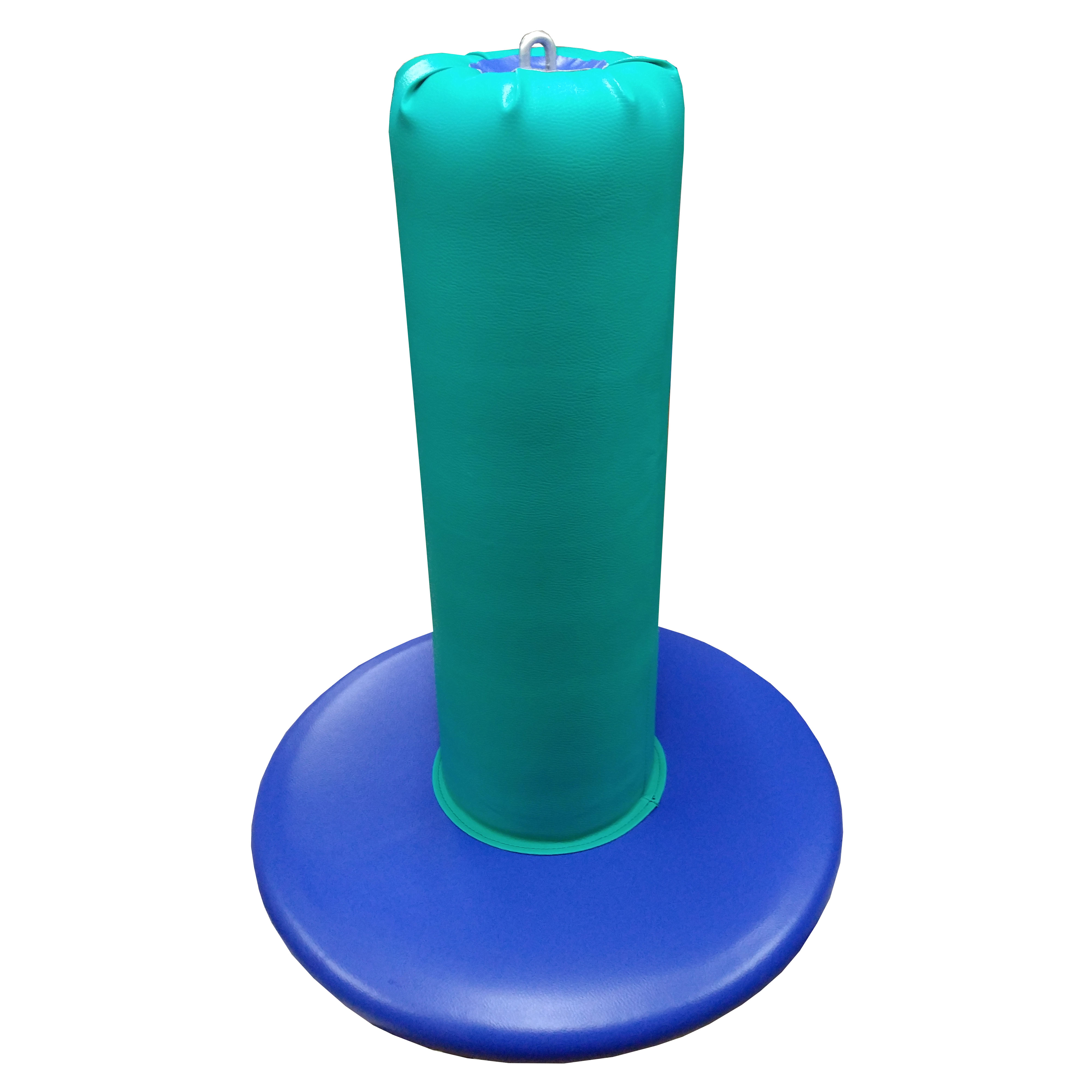 Esta confeccionado con goma espuma de alta densidad forrado con cuerina motonáutica (no eco cuero). Soporte de acero para colgar unido al fondo para soportar el peso del nene.